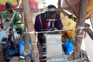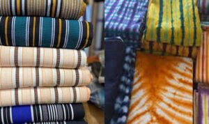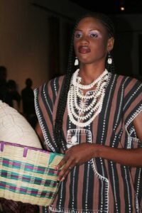 - Pagne tissé : coton local tissé à la main ; chaque motif porte un sens (nature, rites, mémoire). Les ateliers modernisent la main du tissu (fils plus fins, ex. 40/2, meilleures finitions), le rendant plus souple et adapté au prêt-à-porter, accessoires et décoration.