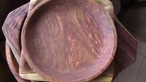 Bois (masques, statuaires, objets du quotidien, mobilier) : formes iconiques, finitions huilées/cirées, et aujourd’hui mobilier artisanal pour hôtellerie, restaurants et résidences.
